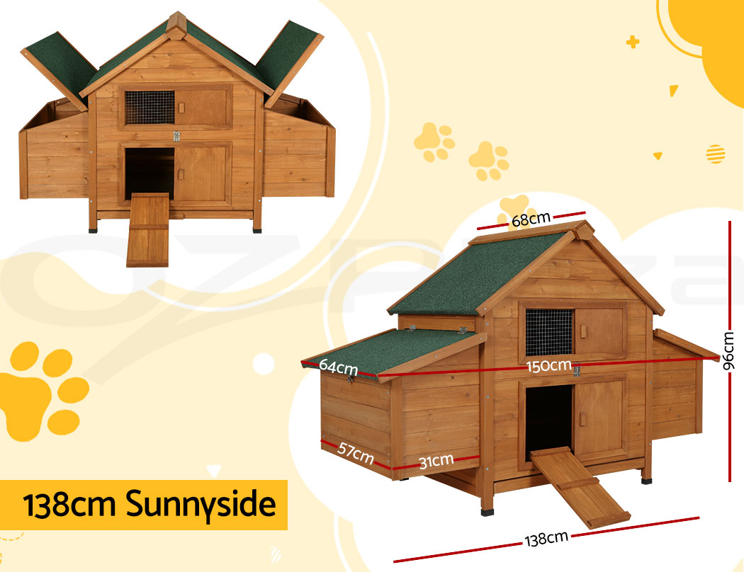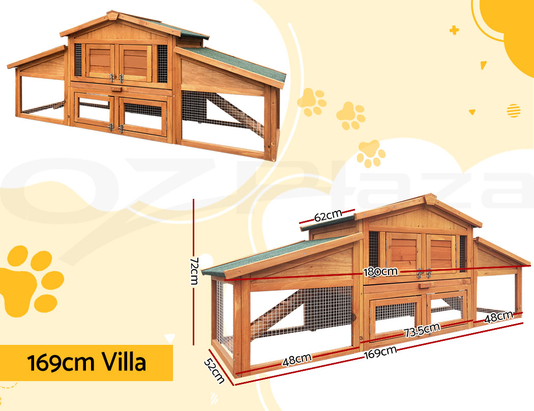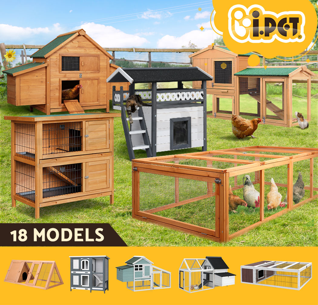 Give your beloved pets a safe and comfortable home to sleep, relax and play with an i.Pet pet hutch. Made for all creatures great and small, our pet hutches are designed to provide the best possible living space for your precious furry family member. We have models suitable for larger pets such as cats and small dogs, as well as models for smaller pets such as rabbits, guinea pigs, ferrets and chickens. With 18 unique models to choose from, you’re bound to find the perfect fit for your home and backyard. Each of our models is made from quality materials such as solid fir wood and has an enclosed play area protected by galvanized mesh for safety and ventilation. Built-in foldable ramps provide convenient entry and exit as well as access to multiple floors. Solid wood and green asphalt felt roofs provide protection from the sun and rain. Each model has unique features and accessories such as egg-hatching boxes, slide-out trays for easy cleaning, lockable entrances and stylish patios. Gift your pets an i.Pet pet hutch today and let them experience the outdoors safely and joyfully.
